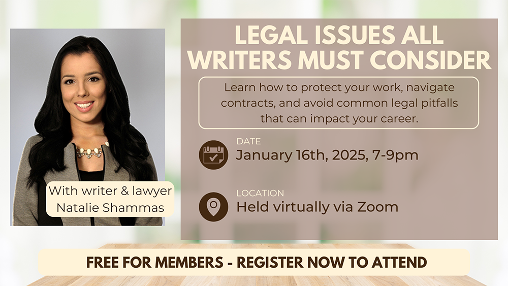 Join us with speaker Natalie Shammas for an informative and engaging talk on the legal challenges writers face in their creative and professional journeys. This session will cover essential topics […]